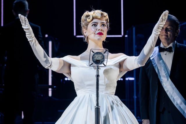 Samantha Pauly has had a long-standing relationship with Evita, having played the title role in two states before landing the lead in Lloyd’s open-air revival. Supposedly, she was cast at the same time as she was offered Katherine Howard in Six in Chicago. Miraculously, Pauly managed to make both jobs work and was the first to climb the industrial steps while wearing white canvas trainers as the modern Evita we’ve come to know.